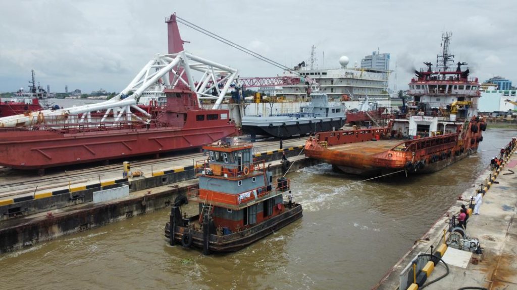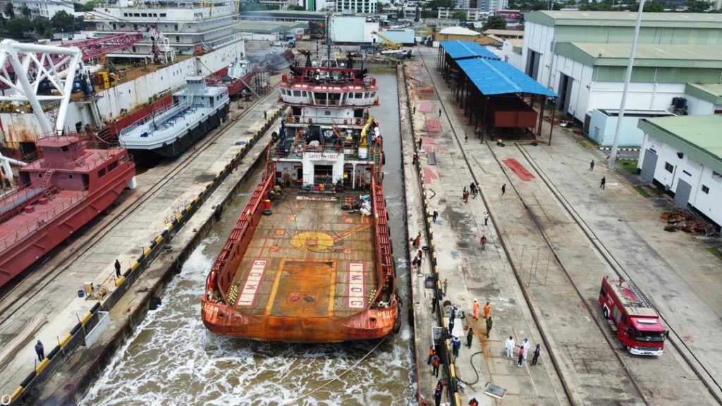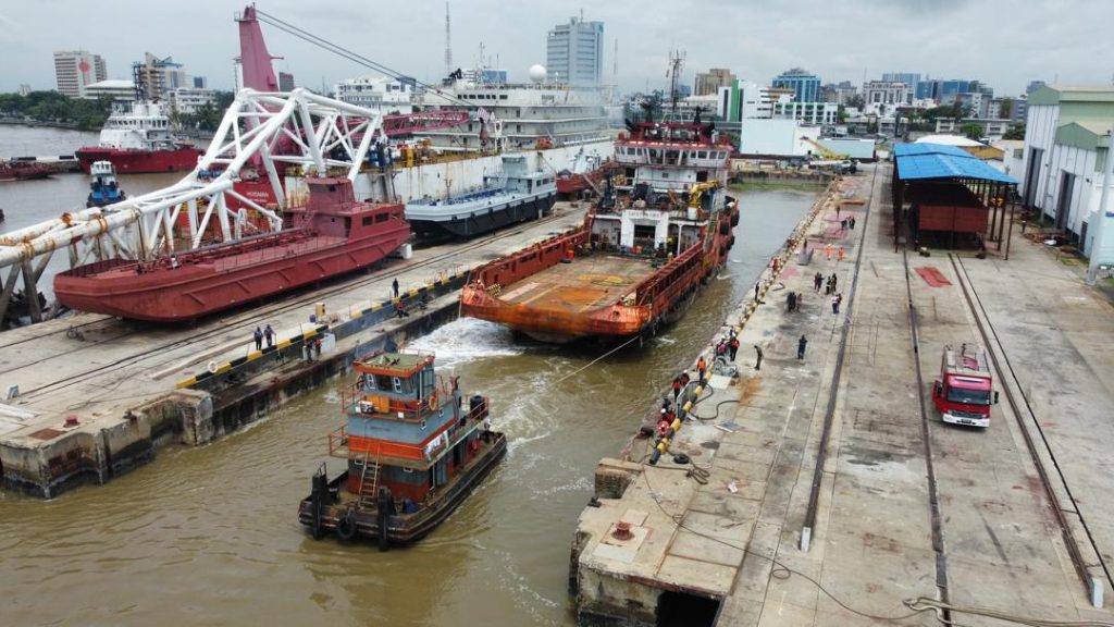 The Naval Dockyard Limited has, once again, demonstrated its capability as one of the leading dockyards in the continent through the successful docking and repairs of MV STARK and TMC EVOLUTION. Both vessels, with a combined tonnage of about 8,600 Tons, were simultaneously docked in the Yard’s 10,000 Ton capacity Graving Dock for preservative and restorative maintenance. The NDL with its well trained and motivated team supported the ships OEMs to repair the Azimuth and Bow Thrusters, conducted grid blasting, hull painting and servicing/pressure testing of about 38 sea chest valves in addition to other vital maintenance and repairs. The vessels were resultantly restored to optimum operational efficiency and safety before the vessels were subsequently undocked on Saturday 19 October 2024. The docking and repairs are indicative of the Yard’s growing contributions to the development of local participation, maritime investments and safety towards enhancing Nigeria’s Blue Economy. Kudos to the Naval Dockyard, an outstanding outfit for advancing Nigeria’s self-reliance and maritime power projection within the continent and globe!