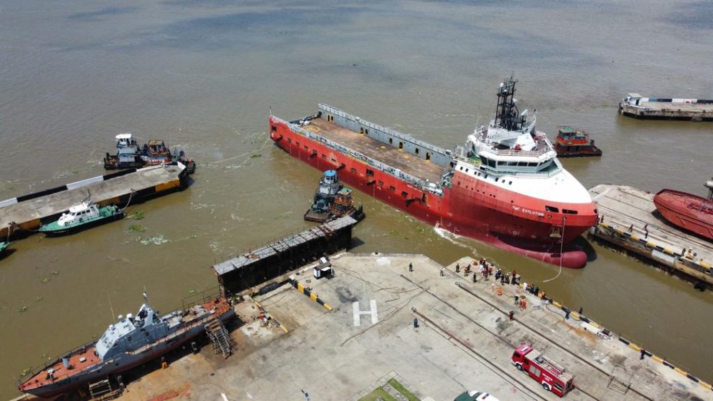 MV MUSTANG DOCKED AT NAVAL DOCKYARD LIMITED NIGERIA The successful docking of MV MUSTANG in one of the 250-ton Twin